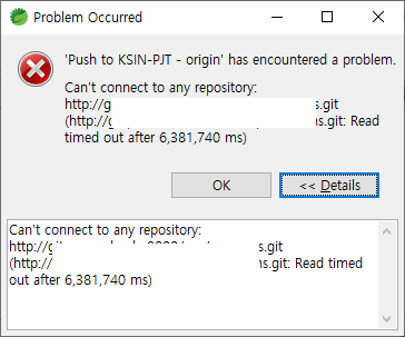 프로젝트 용량이 큰 경우 Time out error가 다음과 같이 발생한다.